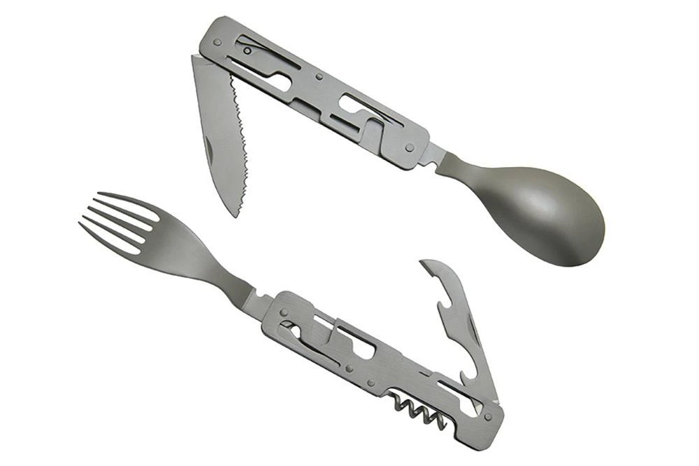 Complete with its 6 functions, light and protected in a reinforced neoprene cover, this cutlery will accompany all your meals, for faraway journeys as well as lunches in the park. Cutlery set in food grade stainless steel, wirth titanium coating presented in a dark grey neoprene pouch.