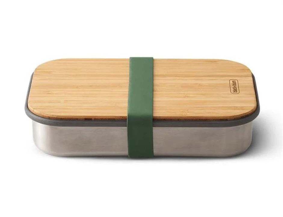 A 900ml / 30 fl oz stainless steel lunch box that makes it easy to take your food with you and even includes a bamboo lid that doubles as a chopping board.