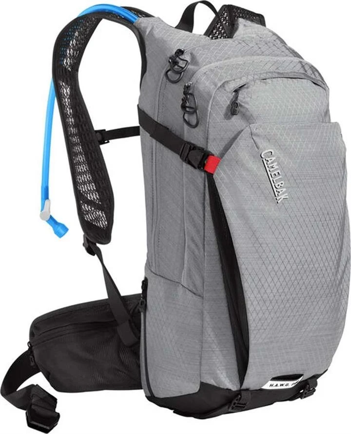 Maximum storage, hydration, and comfort make the H.A.W.G.Γ’βΒ’ Pro a triple threat on the trail. Equipped with a large 3-liter CruxΓ’βΒ’ Reservoir and the cargo capacity to hold another β for a full 6-liters β our largest bike pack was built for long days and epic rides. The all new Air SupportΓ’βΒ’ Pro Back Panel is comfortable and efficient. Designed with body-mapping technology, air flow is channelled to cool areas that generate the most heat. The 3D vent mesh harness is light and durable and a magnetic tube trap allows for quick sips without taking your eyes off the trail. Hip belt cargo pockets keep essentials close at hand and the universal helmet hook makes it easy to carry when not riding. Unpredictable weather? The built-in rain cover quickly deploys to shield your gear. Always adventure ready, this next generation H.A.W.G. is also Impact ProtectorΓ’βΒ’ and e-bike battery compatible.